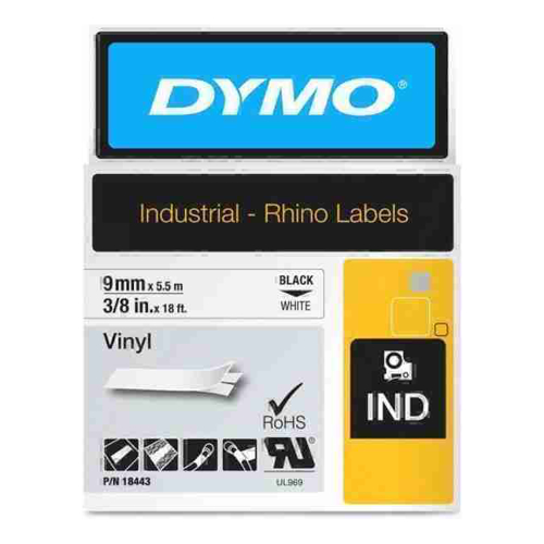 [18443] Dymo DymoRhino Blk on Wht 9mm Tape