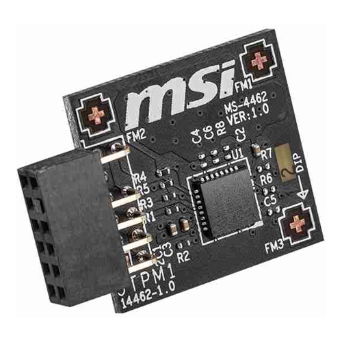 MSI TPM 2.0 Module (MS-4462) SPI Interface 12-1 Pin Supports MSI Intel 400 Series Motherboards and MSI AMD 500 Series Motherboards Click image for larger image.